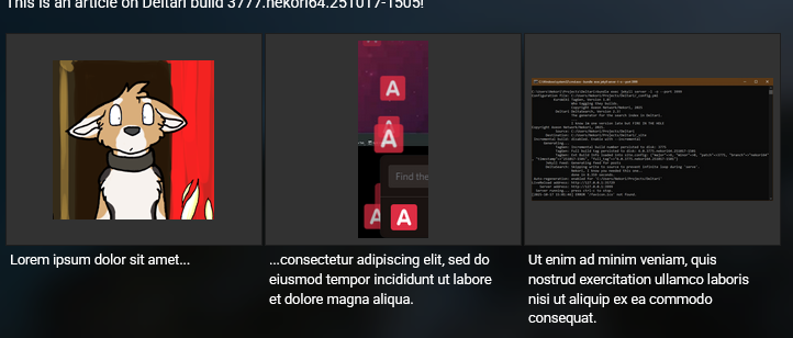 The gallery item is a way to organize your images in a clean way. This item is compatible with SpringViewer (the KuroWiki media viewer), so whenever you click the image in a gallery frame, SpringViewer will happily open it for you! (unless you incorrectly add the gallery item or image, or you make SpringViewer mad, which is rare to happen (be careful! they are a real grumpy creature)).